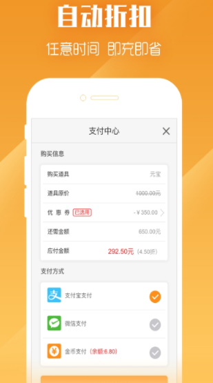 3.还能为用户提供自动充值折扣而体验,对用户喜欢的游戏可以快速提供下载体验;