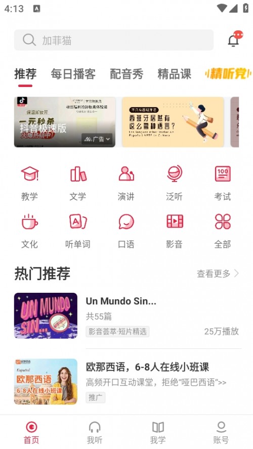 每日西班牙语听力APP下载(每日西语听力),这款软件中的西班牙语知识内容都是可以让小伙伴们在练习听说读写等项目内容时反复巩固提高使用的。