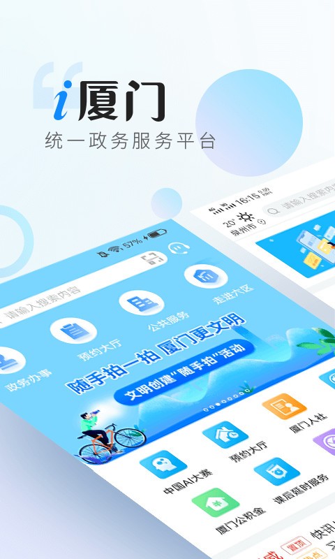 i厦门app(易速软件园提供下载)是一款专为厦门本地的用户打造的惠民政务服务软件,用户可以在这款软件上了解到许多本地的政务资讯和生活新闻,可以在软件上通过各种便捷的功能一键直达自己需要办理的业务服务,而且不会限制办理的时间,不论用户身在何处何地,都可以在手机上办理各种政务业务,同时还有许多便民的自助服务可以使用,大大方便了用户的办事效率。易速软件园现有最新版本,感兴趣的朋友们就来点击下载吧!