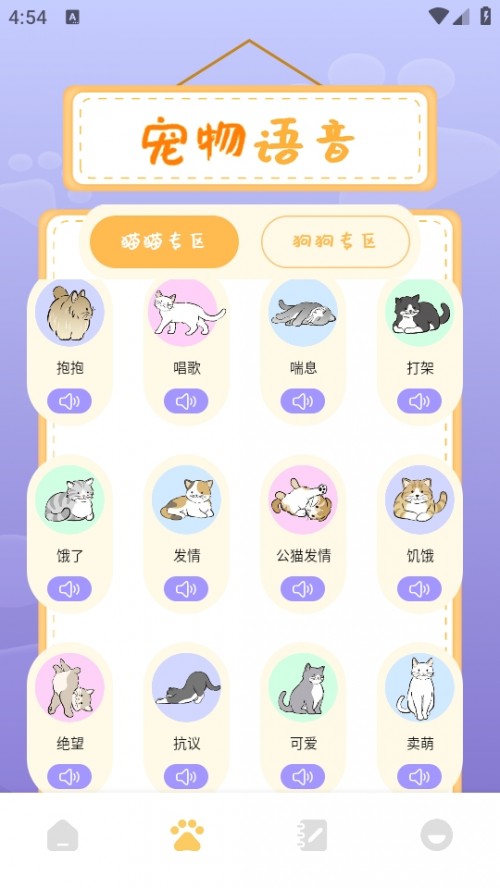 喵喵翻译器软件APP下载2025,这款软件是可以让小伙伴们在与自己的猫猫或者狗狗等宠物一起生活的时候感受许多轻松愉快体验心情的。
