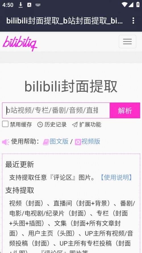 快速提取封面:可以快速准确地从bilibili视频中提取封面图片,节省用户的时间和精力。