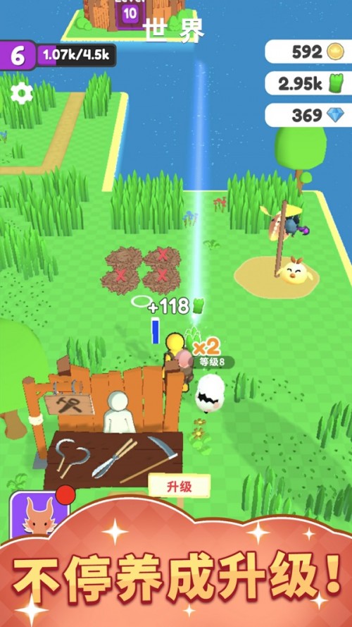 1、只要驯兽师摆好阵容,剩下的问题就让你的精灵伙伴来解决吧!收集饲料和金币,完成游戏中的鸡蛋孵化、战斗、精灵升级和进阶。
