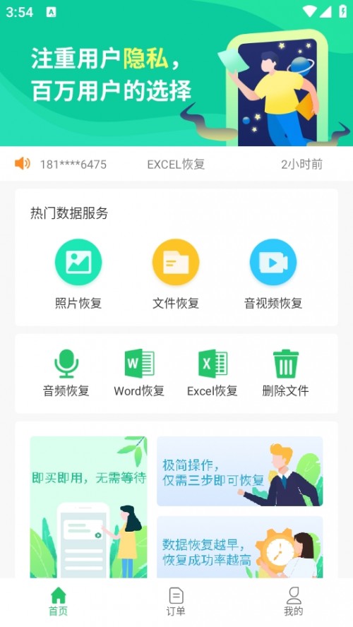 通过极速深度扫描技术,为用户迅速找回和恢复丢失或删除的数据,支持手机照片恢复、文件恢复等,整个恢复服务过程严格保密,不会泄露用户的任何隐私。
