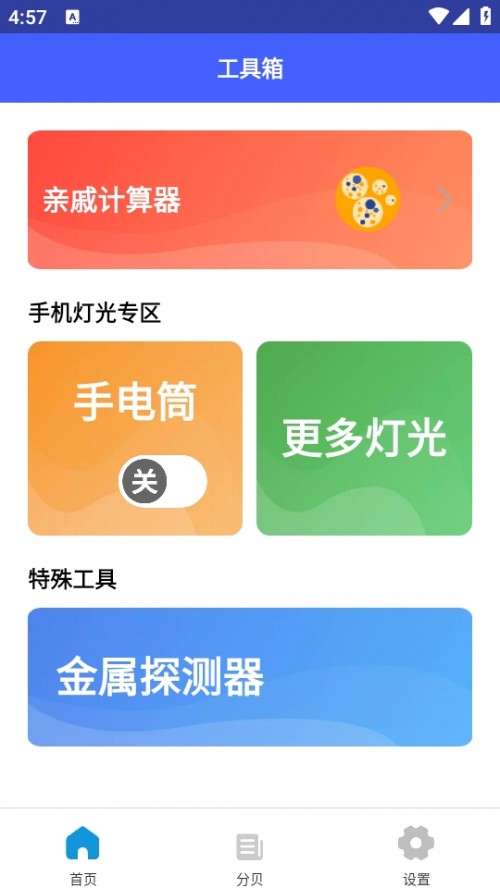 1、融合了亲戚计算器、手机灯光功能、金融探测器和噪音检测仪等多种好用的工具。