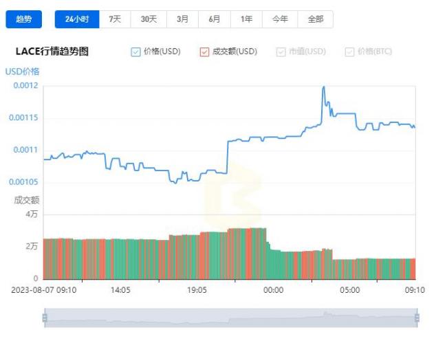 截止到2023-08-08 9时 LACE币的最新价格为: