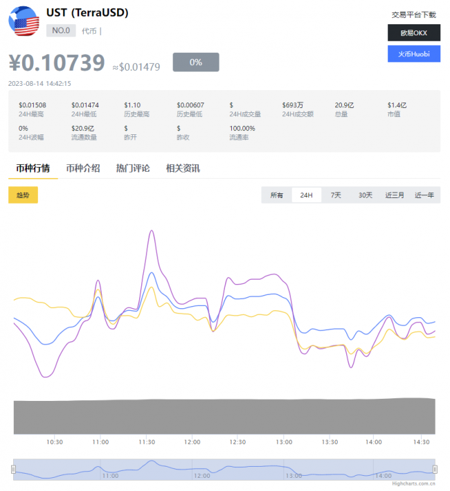 UST币今日实时价格数据信息分享!UST币最新市场动态行情全数据分享!