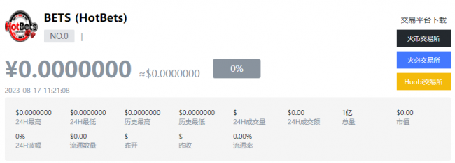 截止2023年08月17日发稿之前,根据“币界网”消息,目前找到的简称为“BETS”币的数字货币产品均已经进入了下架状态:
